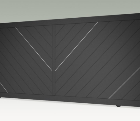 Οι κολώνες είναι σε χρώμα ΓΚΡΙ ΜΕΤΑΛΛΙΚΟ και έχουν διατομή 60x60mm. Τα οριζόντια στοιχεία είναι προφίλ 140x14mm στο ιδιο χρώμα. Eίναι σχεδιασμενο για να προσφερει ιδιωτικοτητα και παραλληλα να αφηνει διοδο στον αερα για μεγαλυτερη σταθεροτητα σε μεγαλυτερα υψη.